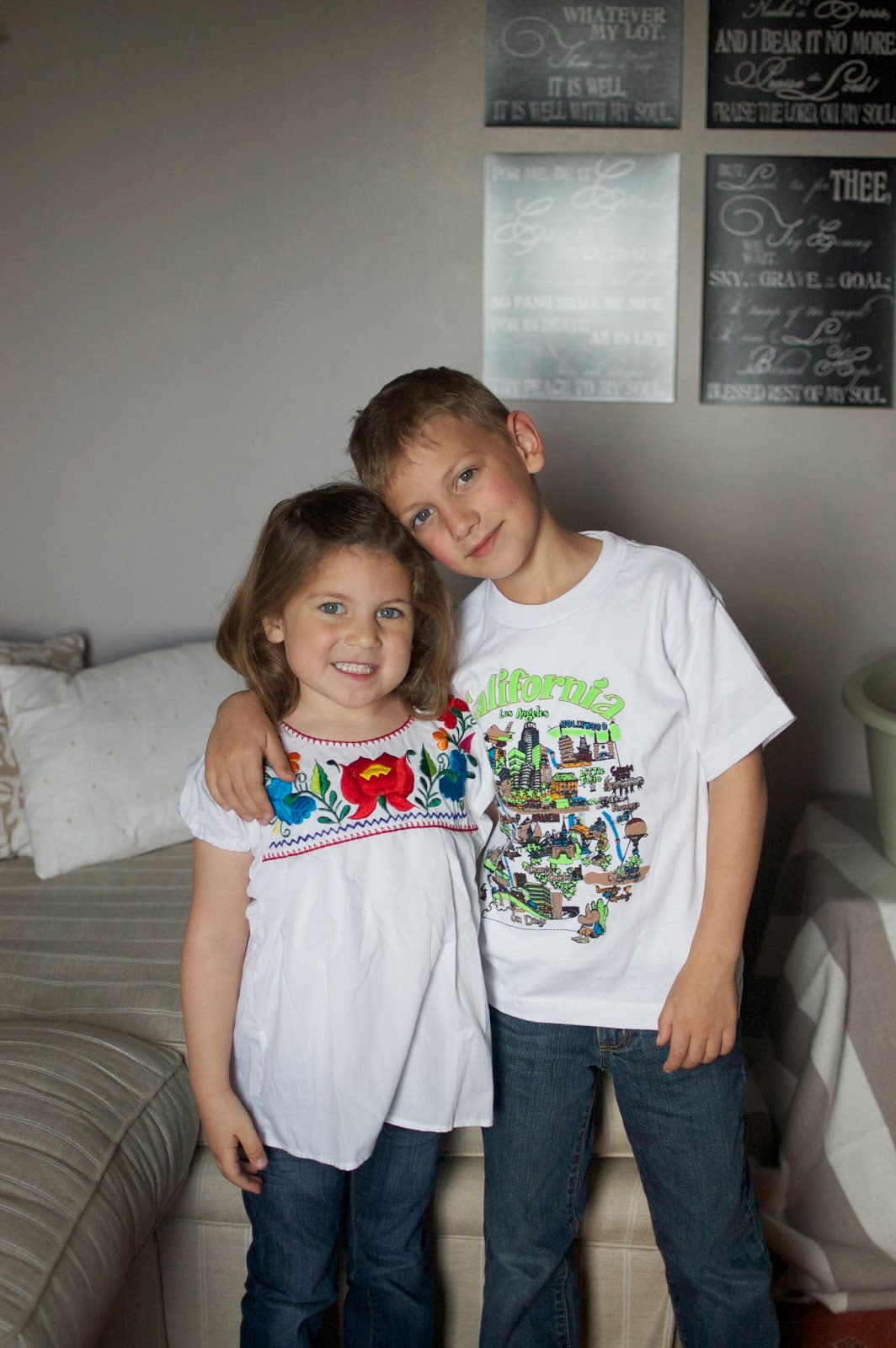Meanwhile, I snapped a shot of my kids in shirts they were sent by Debby, so that Great Grandpa Gene and Great Grandma Judy could have a photo of all of the Ramaker-side great-grands in matching shirts.